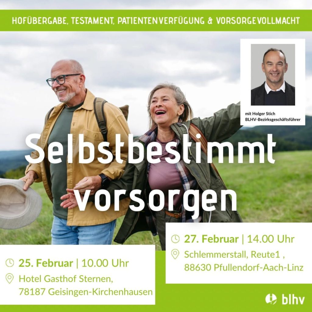 In unserer Infoveranstaltung speziell für Landwirtinnen und Landwirte geht es um wichtige Themen wie Testament, Vorsorgevollmacht und Patientenverfügung.