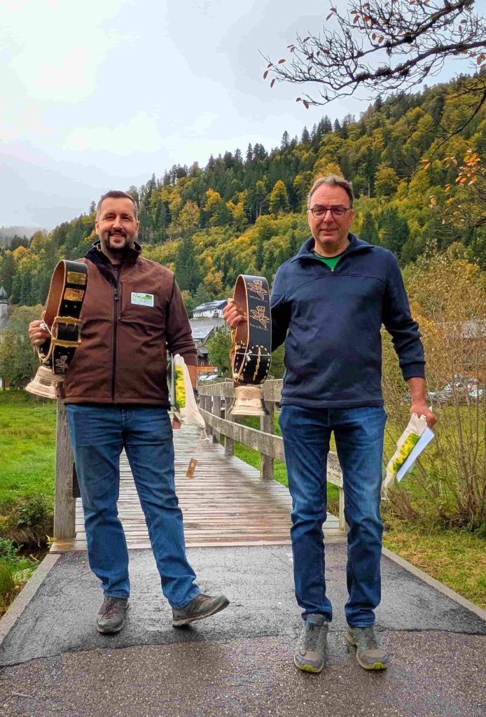 Anlässlich der Eröffnung des Naturpark-Marktes in Menzenschwand wurden schließlich die finalen Gewinner verkündet. Markus Binninger wurde Sieger in der Kategorie „artenreiche Mähwiesen“, Christof Böhler holte sich den Sieg für die beste beweidete Fläche. Sie erhielten hierfür jeweils eine individualisierte, gegossene Kuhglocke. Das Erfolgsgeheimnis von Markus Binninger: „Auf dem Bruderhof in Ewattingen bewirtschaften wir unsere Wiesen schon immer so, dass sie Futter, Vielfalt und Kulturlandschaft zugleich sind, denn davon haben alle etwas.“ Für ihn hat das Naturpark-Projekt eine besondere Relevanz: „Die Wiesenmeisterschaft zeigt, dass Natur und Landwirtschaft Hand in Hand gehen können. Wir erhalten dadurch eine Bühne und können zeigen, wie wichtig unsere Arbeit ist.“