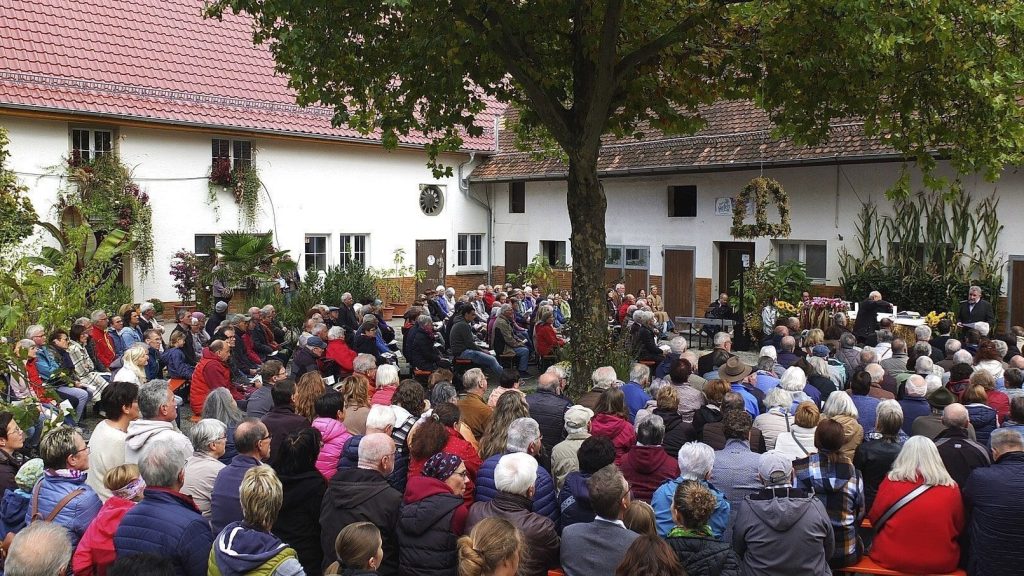 Beim Erntedankfest des BLHV auf dem Altschorenhof in Mühlingen kamen zahlreiche Gäste zusammen. In Gottesdienst und Ansprachen wurde deutlich: Landwirtschaft ist mehr als Versorgung – sie steht auch für Fürsorge, Gemeinschaft und gesellschaftliches Engagement.