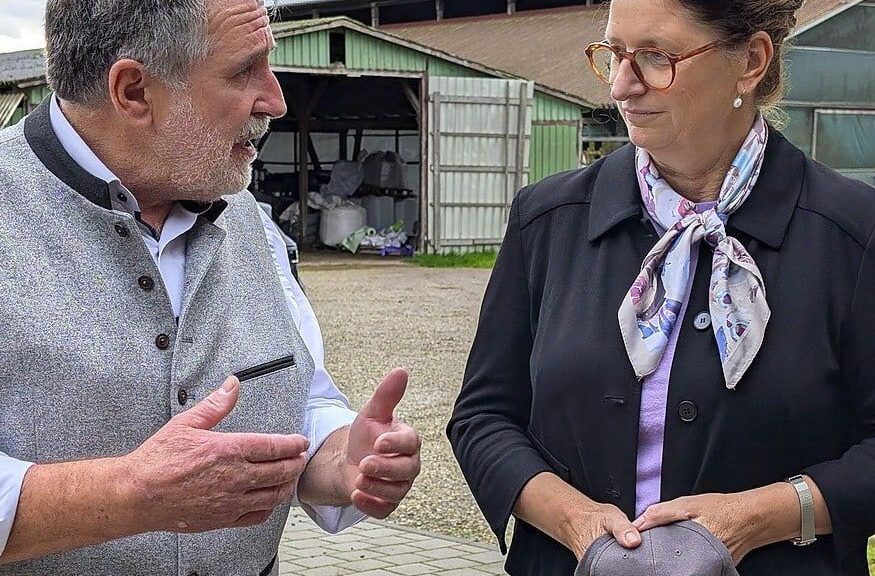 Bei ihrem Antrittsbesuch informierte sich DBV-Generalsekretärin Stefanie Sabet über die Themen und Anliegen des BLHV. Im Mittelpunkt des Austauschs standen die Themen FFH-Mähwiesen, GAP nach 2027 und Wolf.