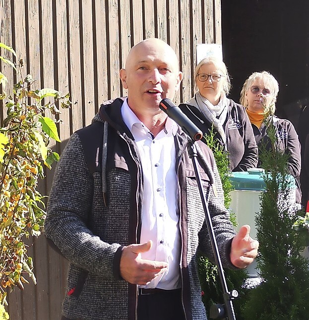 Mit diesen ernsten, aber ebenso bedeutsamen Worten für die bäuerliche Gemeinschaft übergab Bernhard Bolkart das Wort an Thomas Hegner, der den Gottesdienst offiziell eröffnete. Hegner knüpfte dabei an das Leitmotiv des diesjährigen Erntedankgottesdienstes an: „Gemeinsam Verantwortung übernehmen.“ „Heute dürfen wir dankbar auf das zurückblicken, was wir erreicht haben – und zugleich Verantwortung dafür übernehmen, sorgsam mit dem Boden und den Menschen umzugehen. So feiern wir gemeinsam Erntedank“, sagte Hegner.